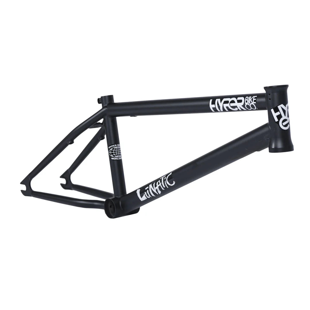 The 20.8in Hyper Lunatic is Brandon Loupos’s signature frame made from 4130 super thermo butted chromoly tubing featuring an integrated headtube, drilled gyro tabs, top tube and downtube gussets for strength, Mid BB shell, integrated seat-post clamp, removable U-brake mounts, Hyper logo seat-stay bridge, and 5mm thick heat-treated investment cast dropouts.