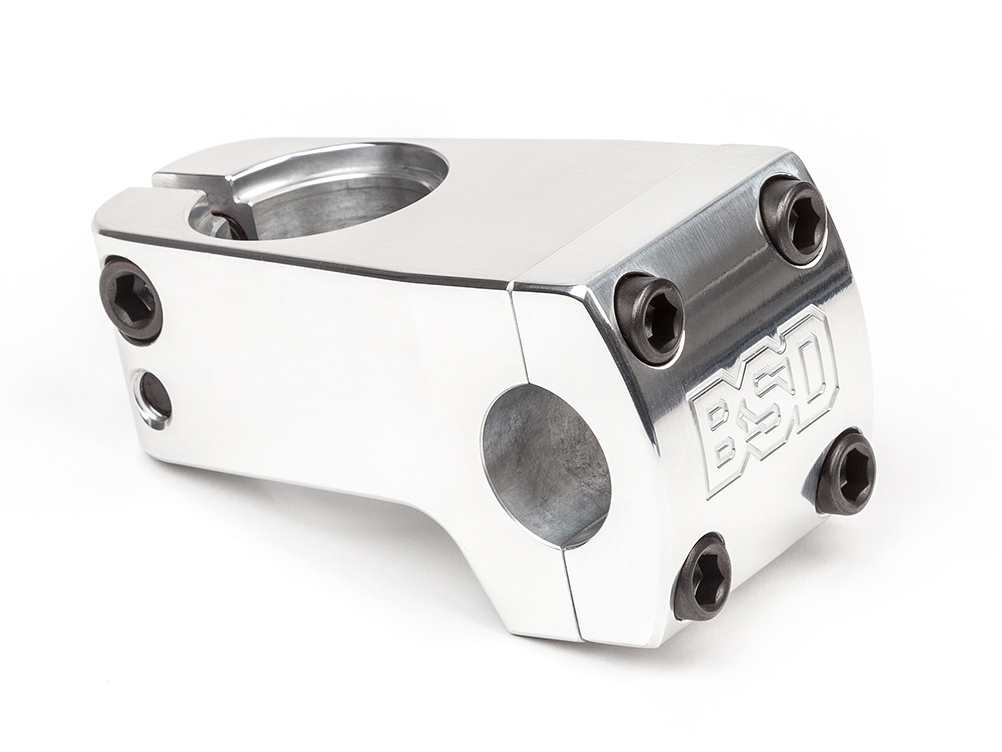 The Dropped stem is BSD's new front load stem, at only 10mm rise it means you can get your bars as low as possible, which is great if you like the shape and look of big bars but not the height. CNC machined from 6061-T6 this stem grips like a vice, especially the newer 1" OS version which has the most clamping power due to the bigger clamping area.