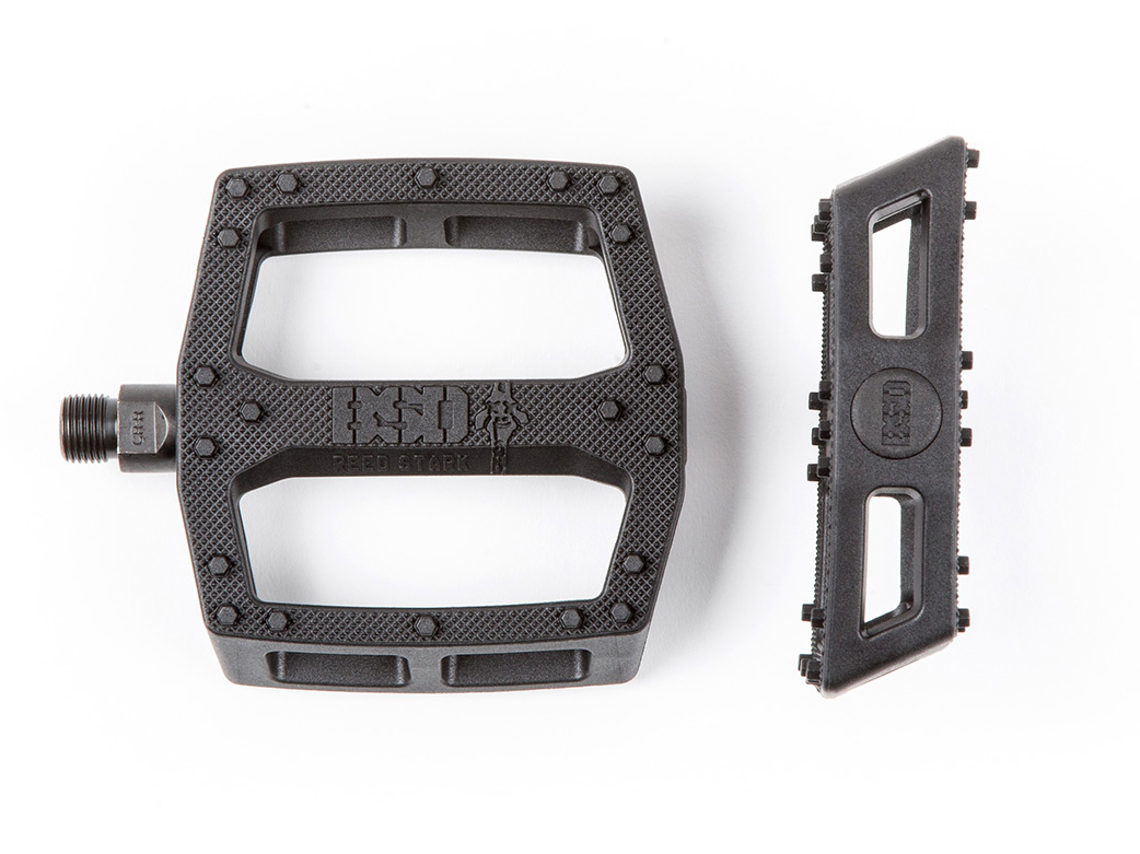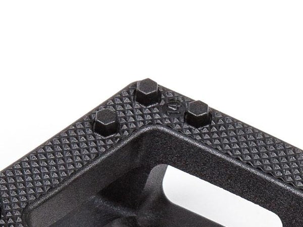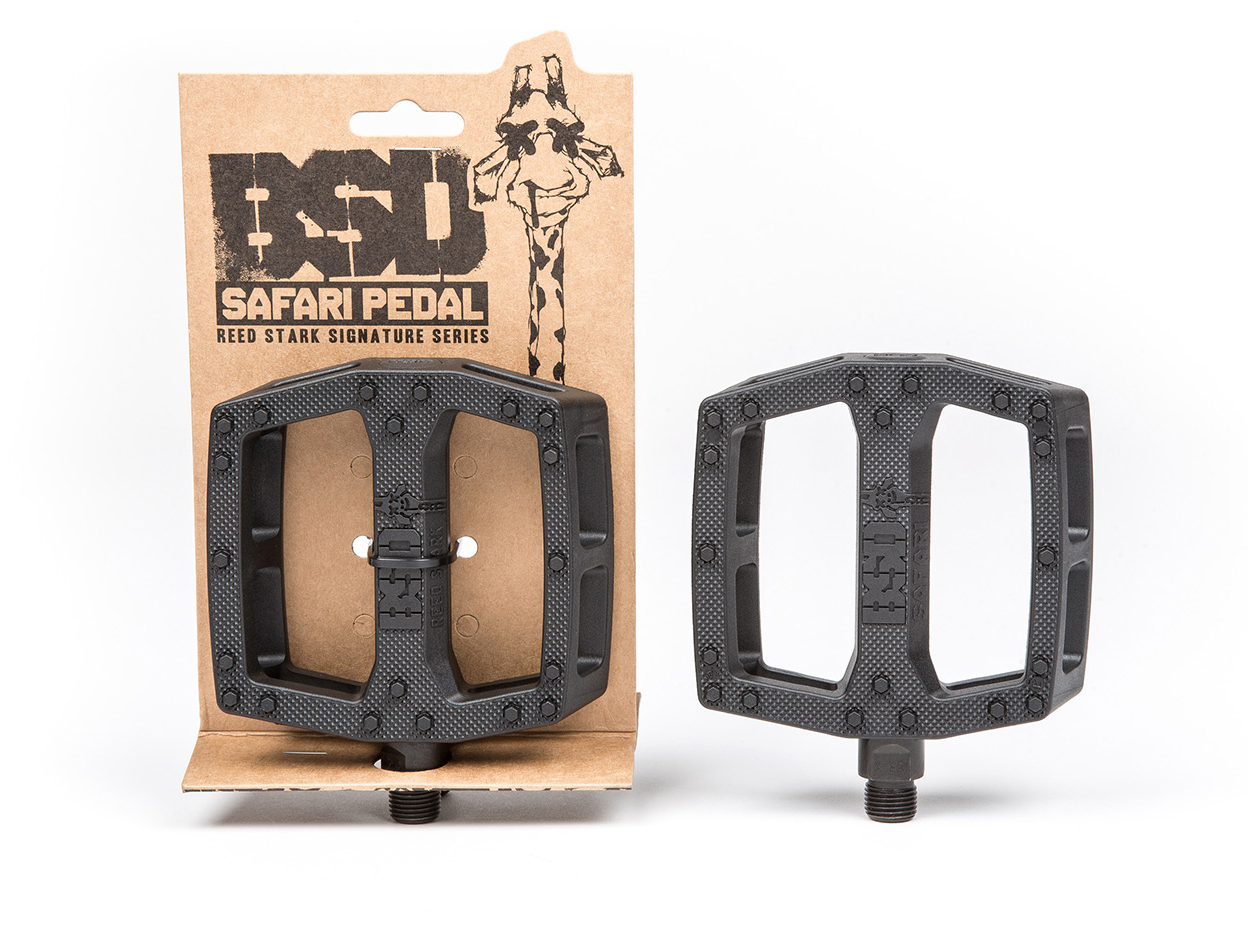 Reed has been talking about this pedal idea for as long as he’s been on BSD. He noticed that when a bike falls to the ground, the corner pins on plastic pedals grind and break off. The Safari pedal is designed with extra pins in these high impact areas to ensure the pedal stays grippy after withstanding severe abuse. The optimal pin placement, hexagonal pin shape, and knurling all combine to make this one of the most durable, effective plastic pedals in the market.