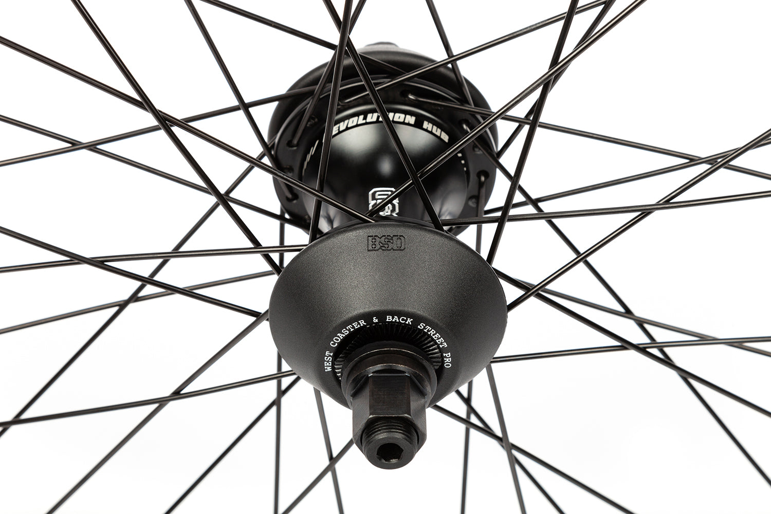 BSD'S latest complete rear freecoaster wheel built around the new lightweight Revolution freecoaster hub and BSD XLT rim, using BSD spokes and rimtape.