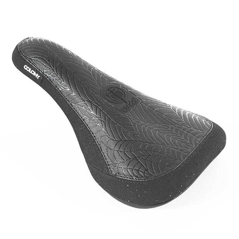 Jayden Fuller signature Colony Plume BMX seat keeps it stealth with the all Black look but with a dash of style courtesy of the debossed pattern.