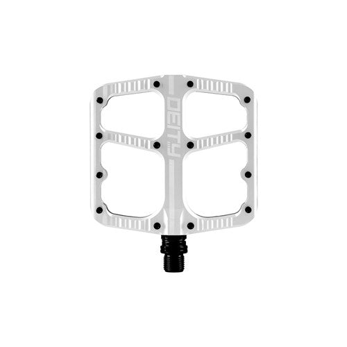 Sleek. Stylish. Purposeful. The FLAT TRAK unifies our models as we move towards a full pedal roster that is symmetrical and features our trademark non-offset pedal profile. The large surface and 1mm concave depth allow your foot ample ability to adjust and find the optimal foot placement. With 14mm leading and trailing edges, the FLAT TRAK thrives in terrain that requires added ground clearance. From rocks and boulders to roots and low bottom brackets the FLAT TRAK is the missing gateway welcoming new riders to the coveted DEITY pedal line.