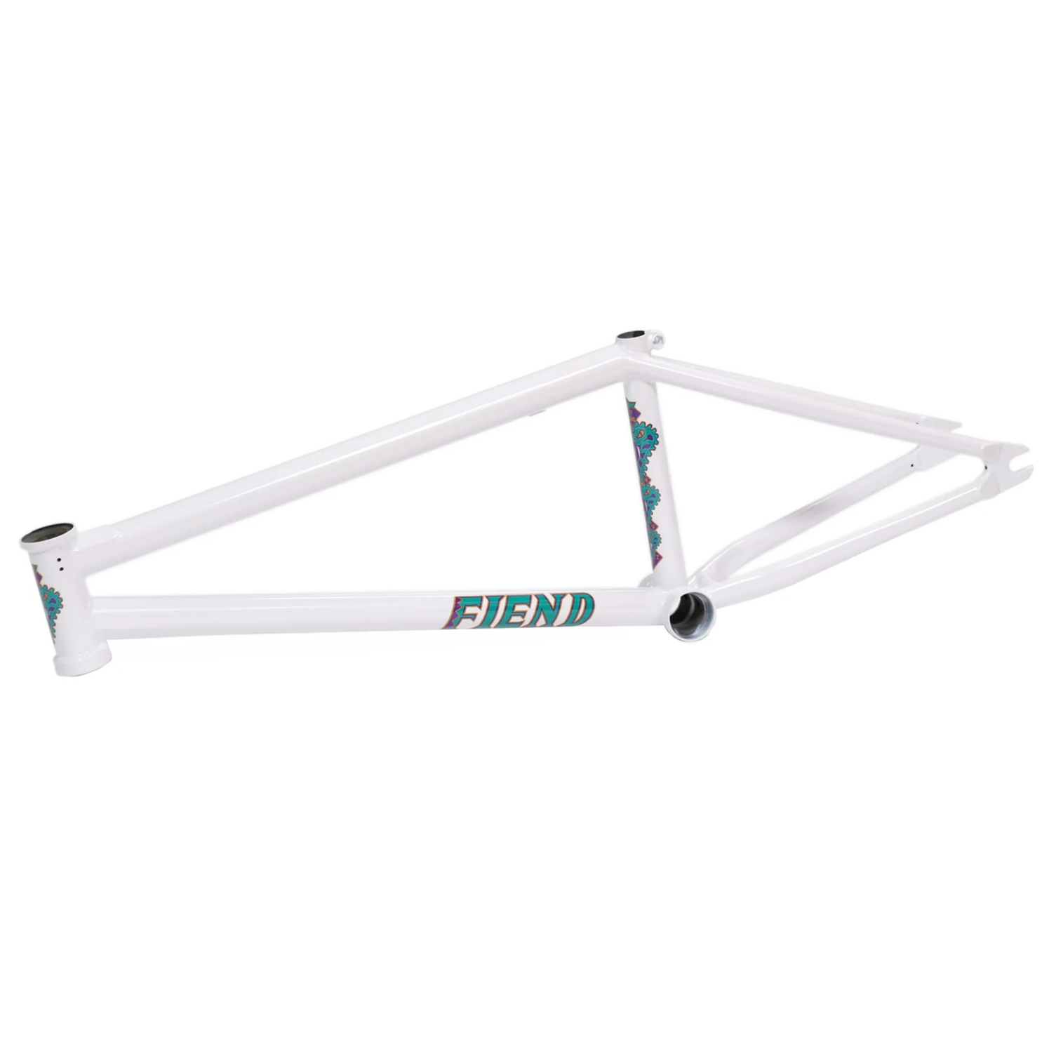 The Fiend Shapeshifter is constructed from 4130 Chromoly tubing with a double butted top tube; gusseted top and down tubes; heat treated Mid BB and integrated headset with ovalized chainstays for added tyre clearance; integrated seat post clamp and 8mm thick investment cast dropouts with integrated chain tensioners. The Shapeshifter pulls double duty being available in 2 chainstay lengths; a short and responsive 320mm or a longer more stable 335mm.