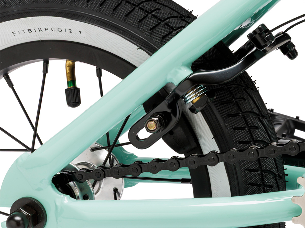 FIT's 2026 MISFIT 12″ has made moving from a balance bike to a pedal bike easier than ever. They have lightened up the frame and fork,  dialled in the handlebar and crank dimensions and added an easier to pedal 23T sprocket. Small diameter grips and a short reach brake lever help keep young riders in control. Low-tension U-brake springs and a linear brake cable make slowing down easier while domed axle nuts and stem bolts eliminate sharp edges for those occasional mishaps. Quick-release seat clamp allows seat height adjustments on the fly, while curved valve stems make airing up the 12″ tyres easier. With two colourways to choose from, each with their own graphic style, FIT's got a first pedal bike perfect for your little MISFIT.