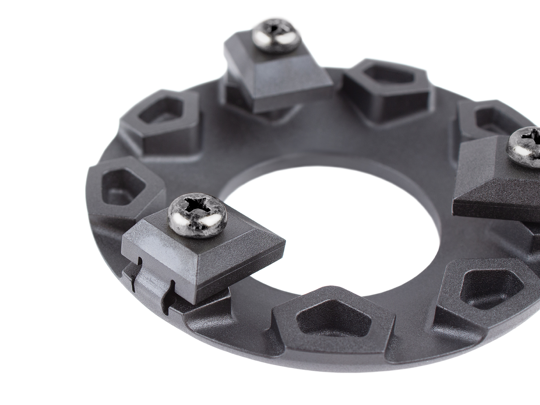 The G.L.A.N.D. MKV builds on this hub guard's long-running history of protecting the spokes and hub while using the strength of the wheel lacing for structural support. The G.L.A.N.D. is made from proprietary plastic to keep the weight low and to spread impacts evenly while grinding - with as little resistance as possible.
