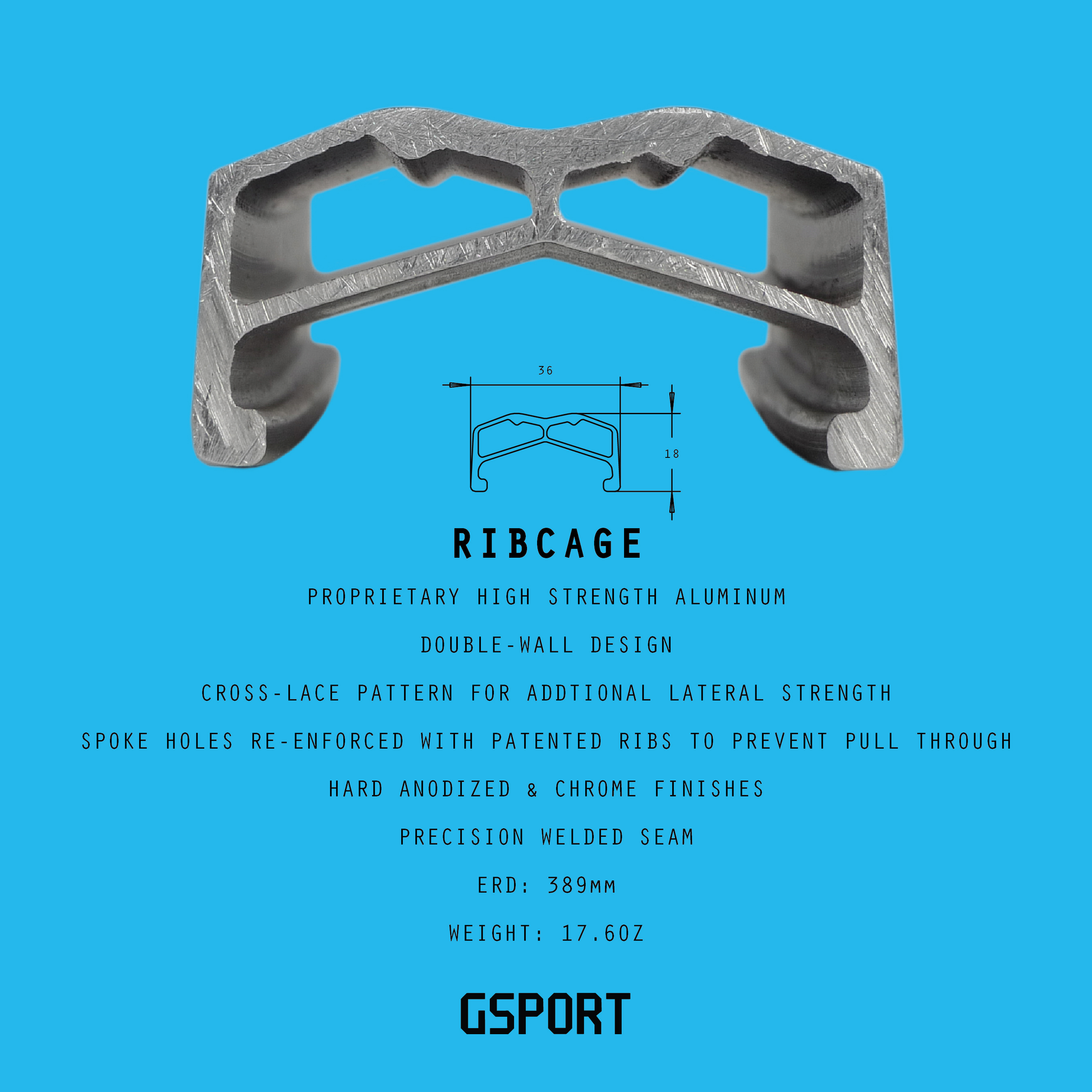 The Ribcage has been one of the only rims to have true design breakthroughs in recent years. Since its introduction the competition has scrambled to catch up but still remain a poor copy, so if it doesn't say GSport on the rim, don't expect it to perform like a G-Sport rim.