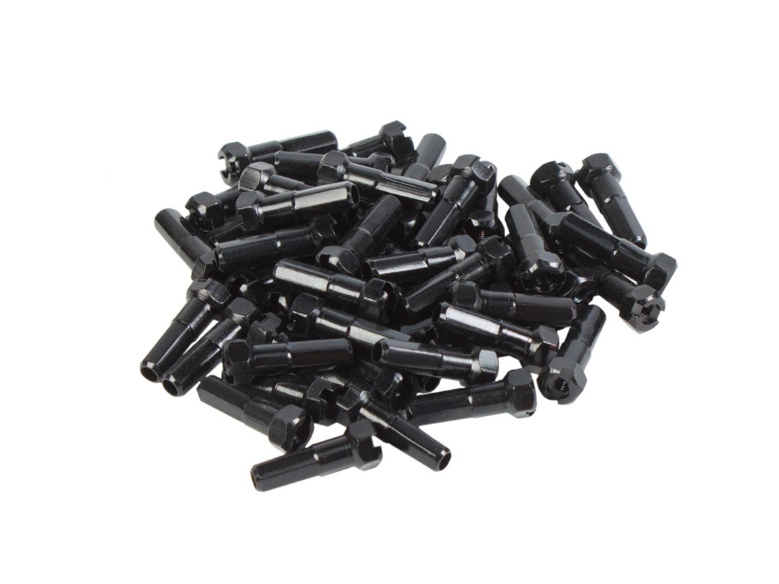 Ordinary aluminum nipples have a bad reputation for rounding off, but the Taper-Hex Nipple shape makes it work better than brass. The tapered hexagon shape means that the spoke wrench can easily slide down the nipple to fit perfectly and transmit maximum torque without deforming.