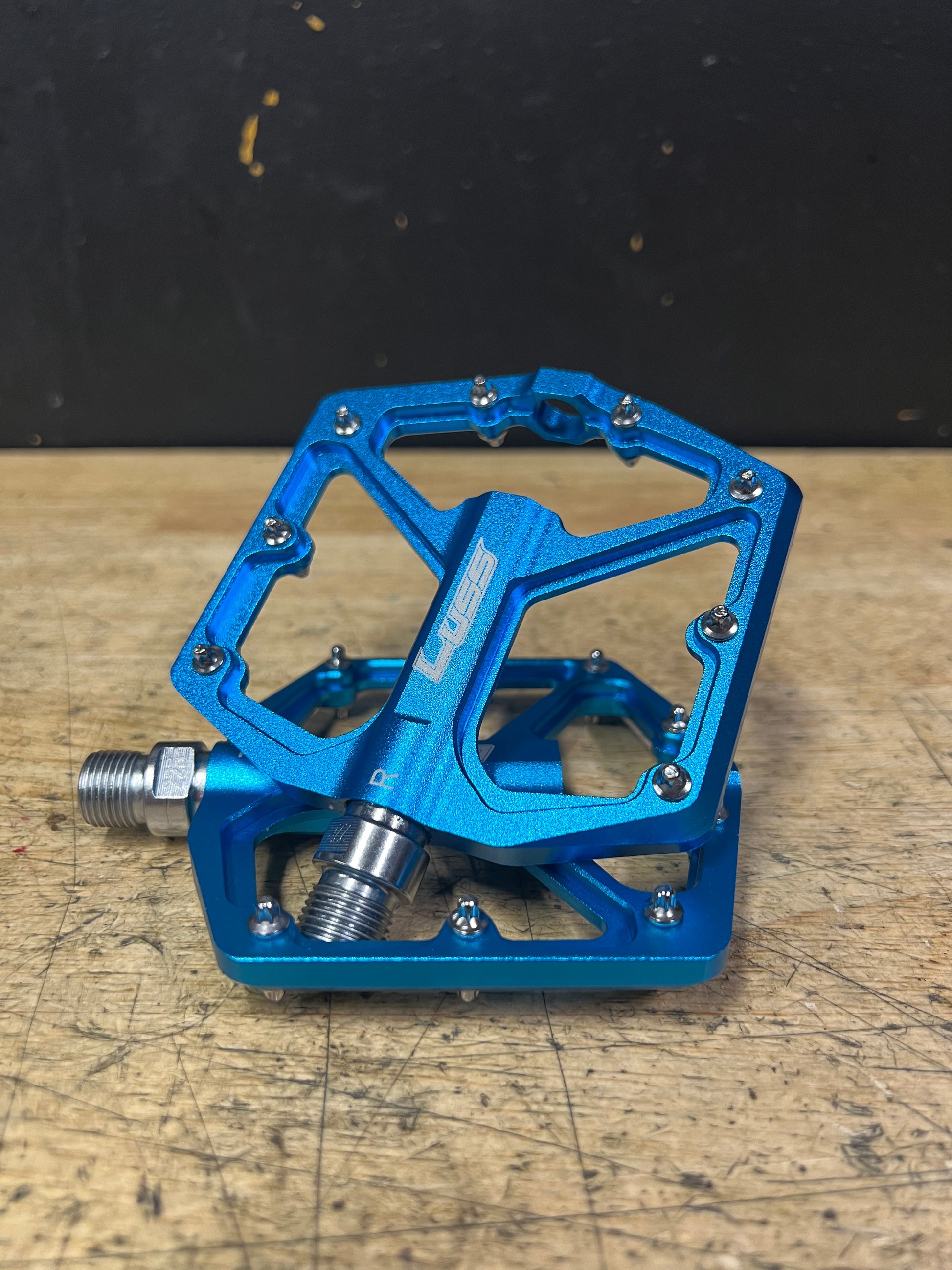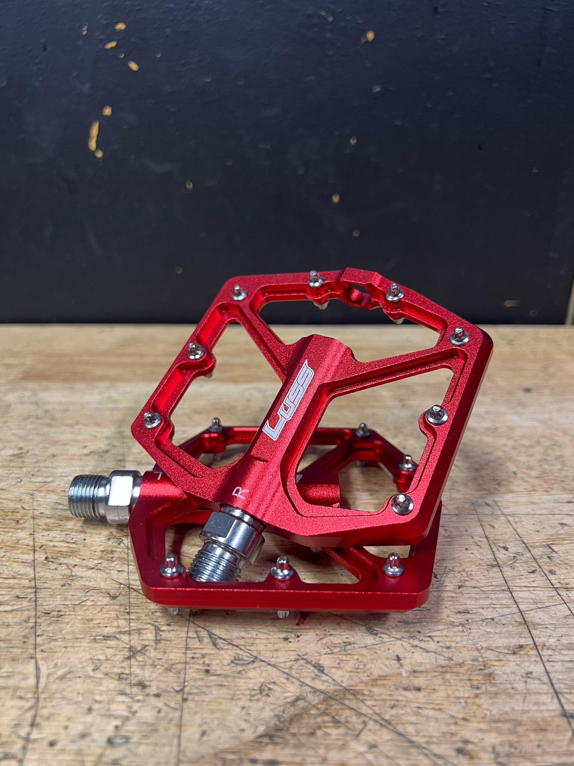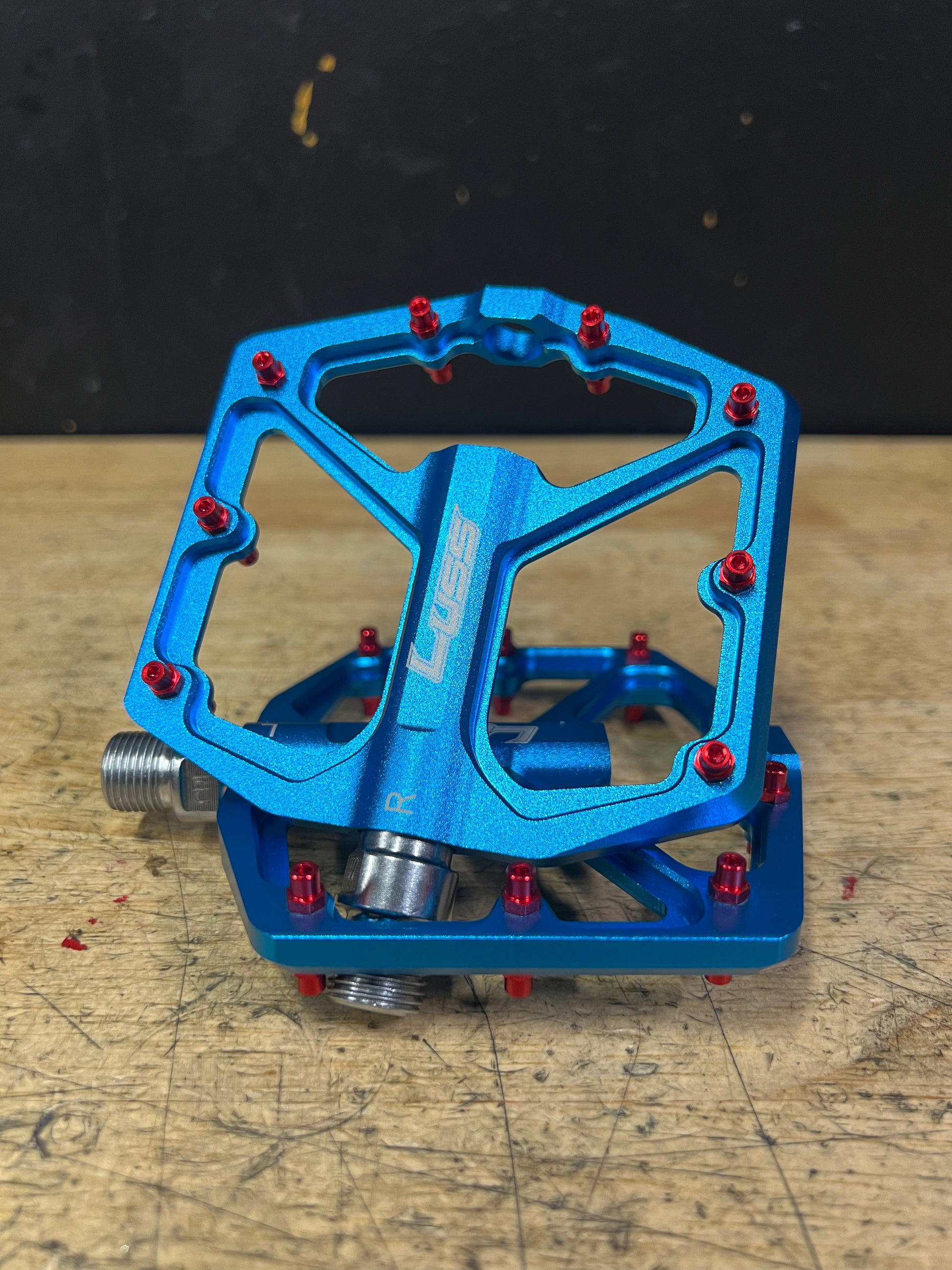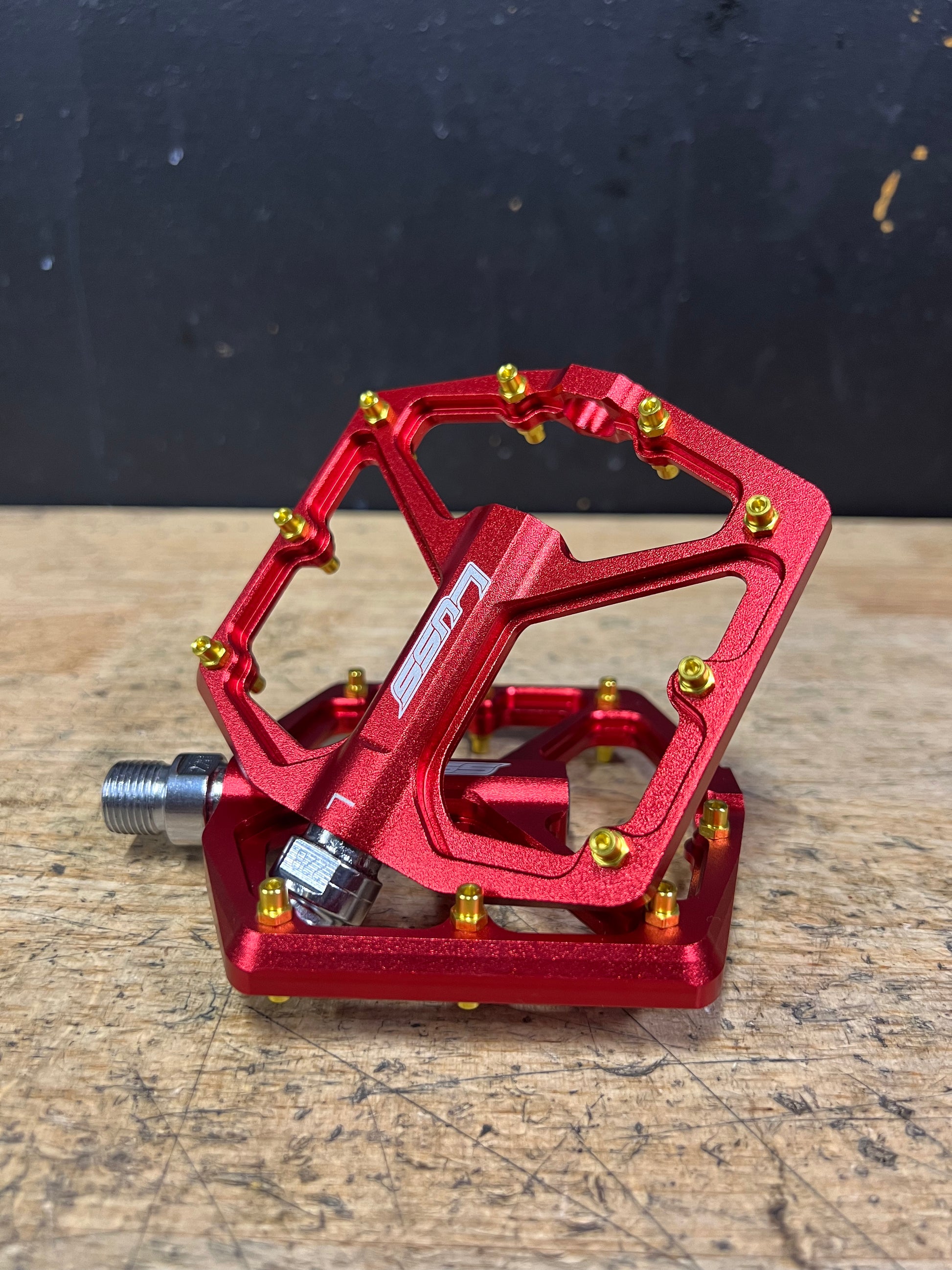 Truly One-of-1 Our double flat pedals can be all sorts of colours. Available in Red, Blue, Purple. Pair them with our very own XL pins in multiple colours and we have created a design playfield for you.
