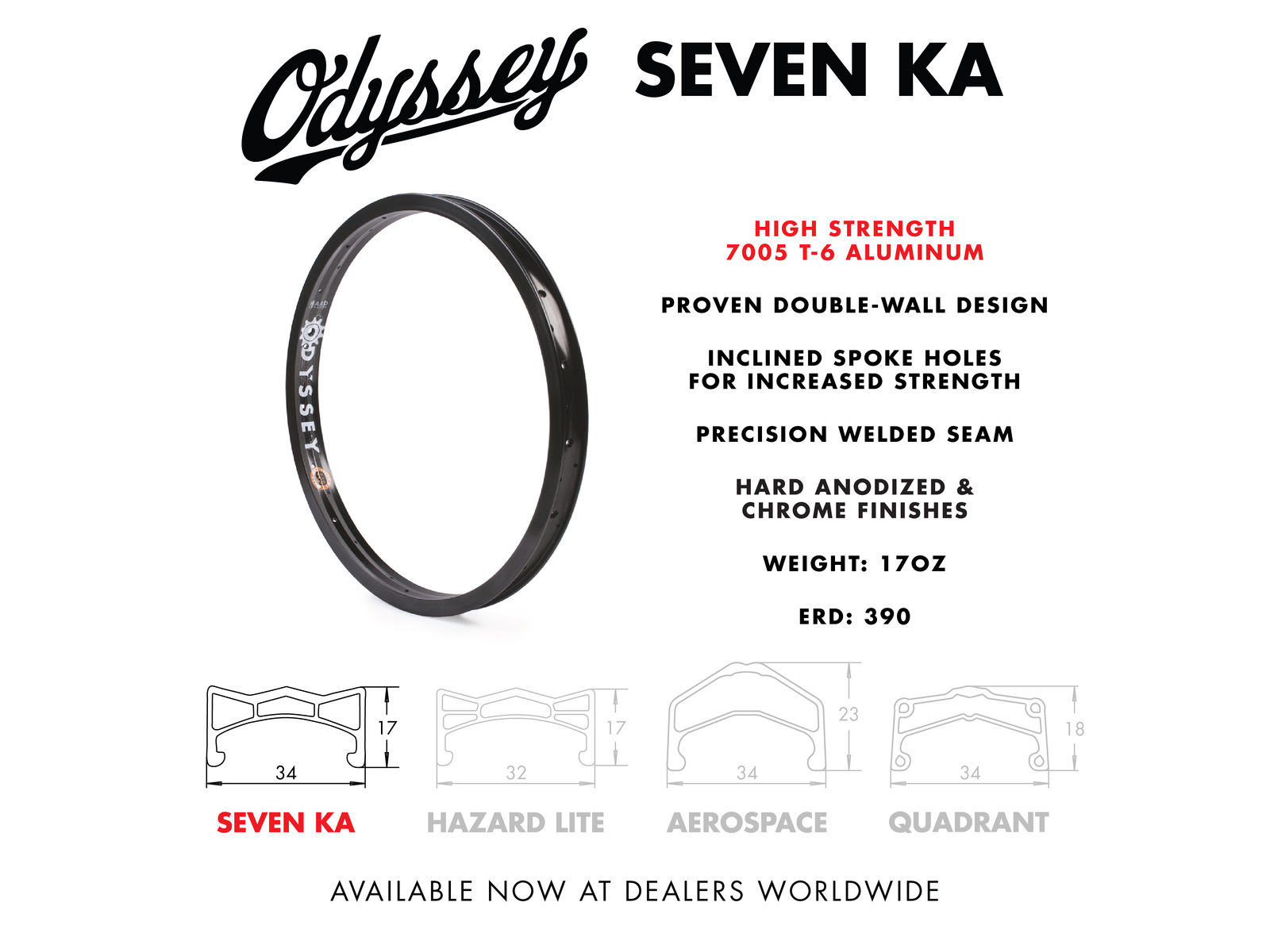 The Odyssey Seven KA Rim is the original 7000 series aluminum BM rim. This specialty grade of aluminum creates a rim that is both lightweight and super strong. The Seven-KA is a proven rim of choice for pro-level riders.