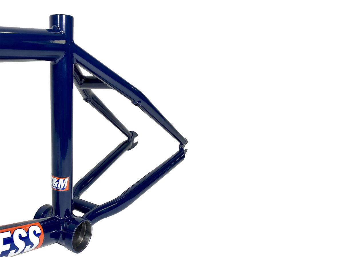Mike Hoder’s signature BTM frame, up-sized with an extra long 5″ head tube and taller 9.5″ standover height. Big Time Machinery for big time guy. All chromoly, beast-proof construction. Made in USA.