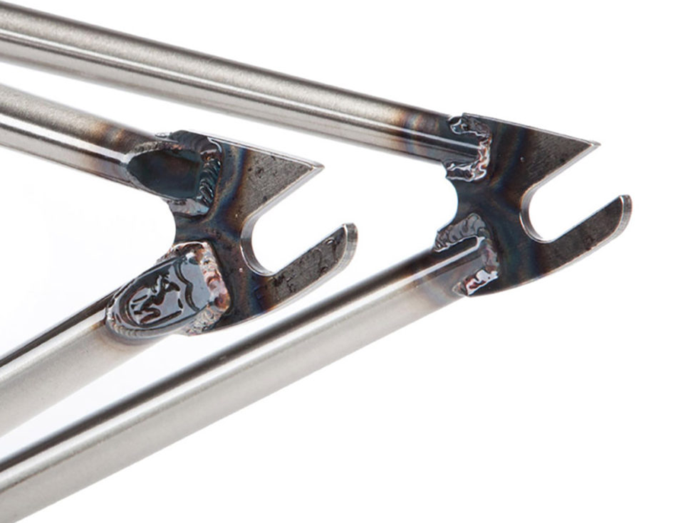 Full-speed and full-boost, the M.O.D. frame is steady, willing and able. James P. Nutter’s signature frame is an all-terrain favorite with serious trails tendencies. Low-slung, slightly longer in the back end and as stable in the air as it is on the landings. 100% chromoly construction. Made in USA.