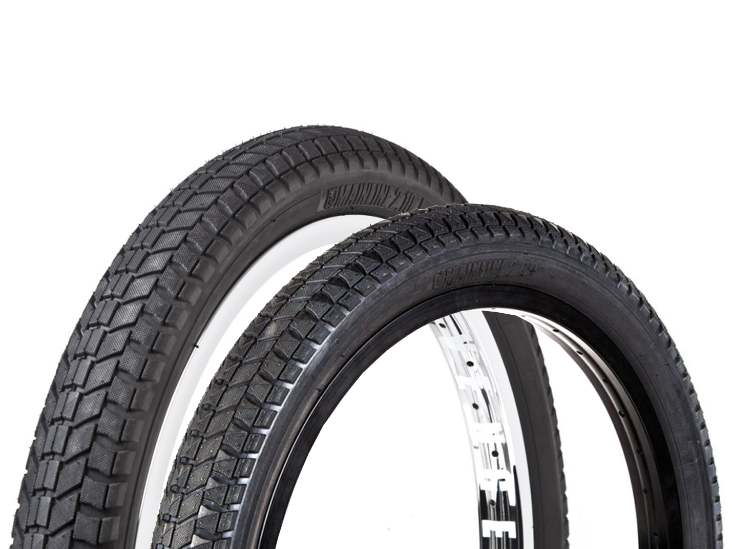 The Mainlines are our trail tyres but they also make durable street tyres. Available with wire beaded mid-weight, high pressure casings. The 2.20” has a micro knurled surface on a directional tread designed to go on the front or the rear.  Available in 20” and 22″ sizes.