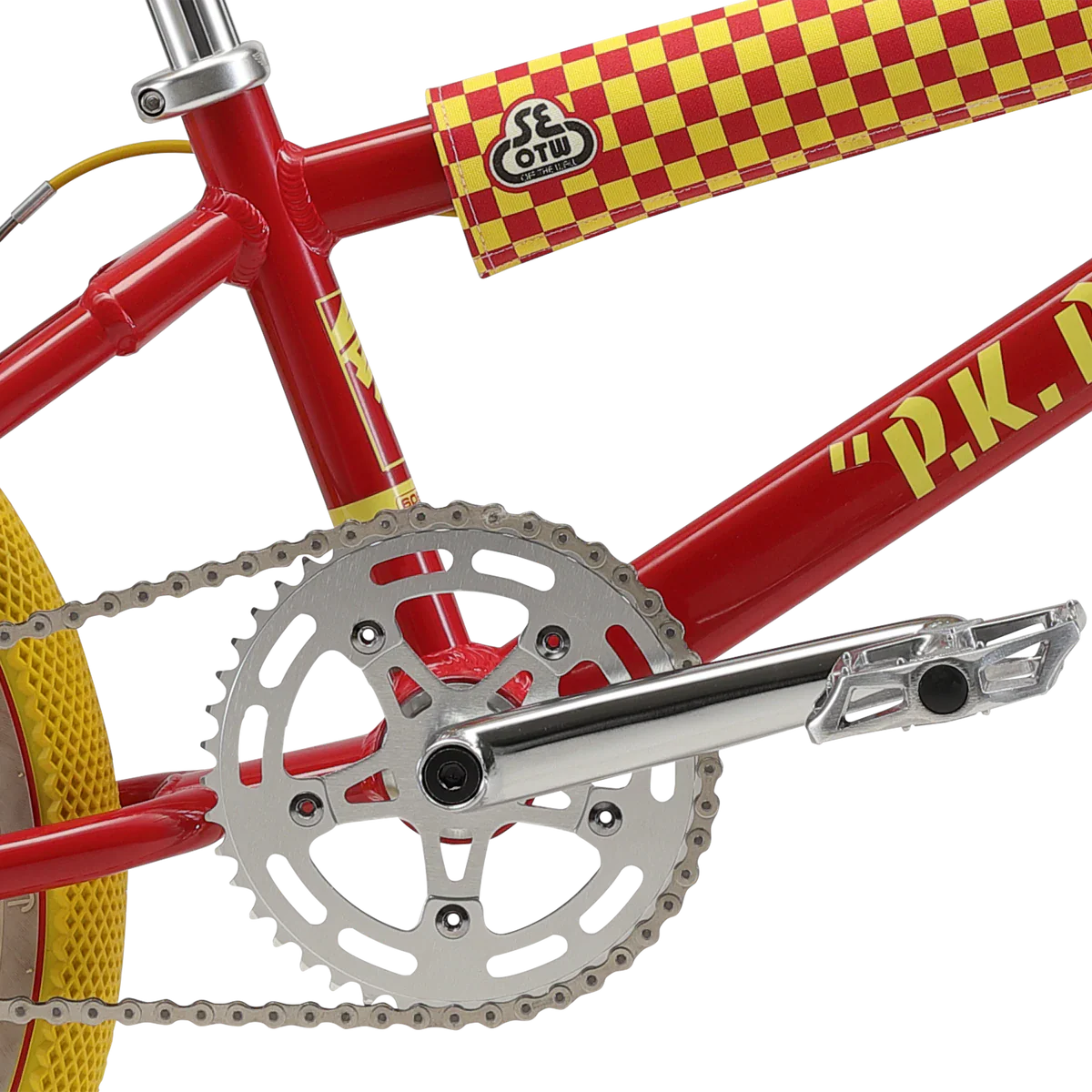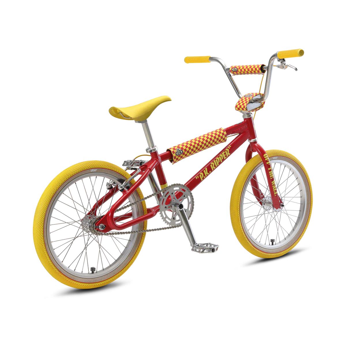 With over 40 years of production, the PK Ripper is the most famous and longest-running bike in the history of BMX. It honors a legacy both innovative and timeless. This year we collaborated with Vans, the original action sports footwear and apparel company, to produce the first-ever limited-edition Vans PK Ripper, adorned with details like Vans x Cult tires and grips, a Vans checkerboard padset, and even Vans ‘66 valve caps. Vans was founded in 1966 in Anaheim, CA, and the brand is embedded in BMX culture. Many top riders throughout the history of the sport including “PK” himself, Perry Kramer, have worn Vans shoes and ridden in many Vans-sponsored BMX races and events. To complete this awesome PK Ripper collaboration, Vans produced Vans x SE Bikes PK Ripper shoes, complete with reflective checkerboard detailing and PK Ripper sidewall art. Get the bike and get rippin’!