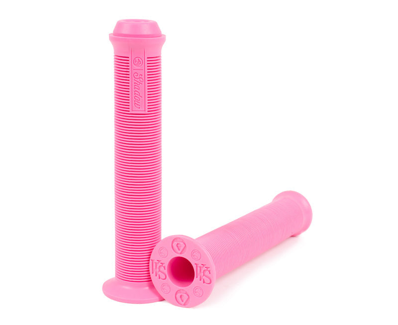 The VVS DCR Grips feature a classic ribbed pattern with a Shadow logo at the bar end side, these grips also come Shadow nylon bar ends.