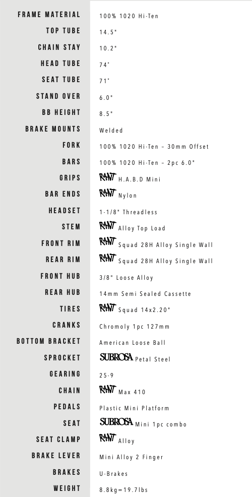 To get yourself on a super unique, high-spec rig this year, this is your chance! Subrosa has specifically built these for the avid rider in mind, featuring high-end parts from Subrosa and their sister company Rant, these bikes are ready to hit the streets, park or Dirt Jumps right out of the box.
