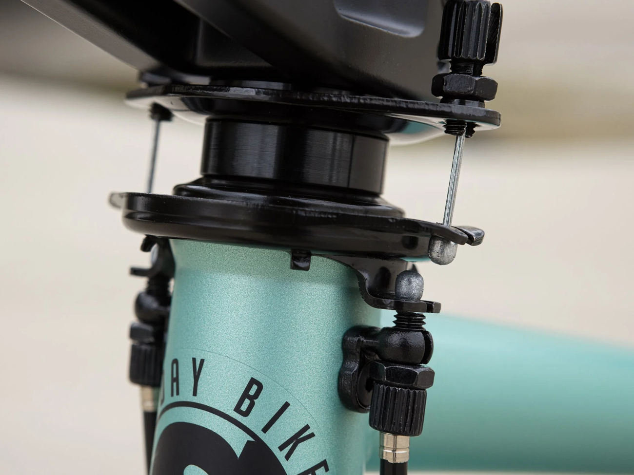 The Primer Park model with a park specific geometry and an Odyssey Gyro that is connected to a pro-level Odyssey M2 Trigger lever and pre-cut dual lower cables for better braking and easier maintenance.