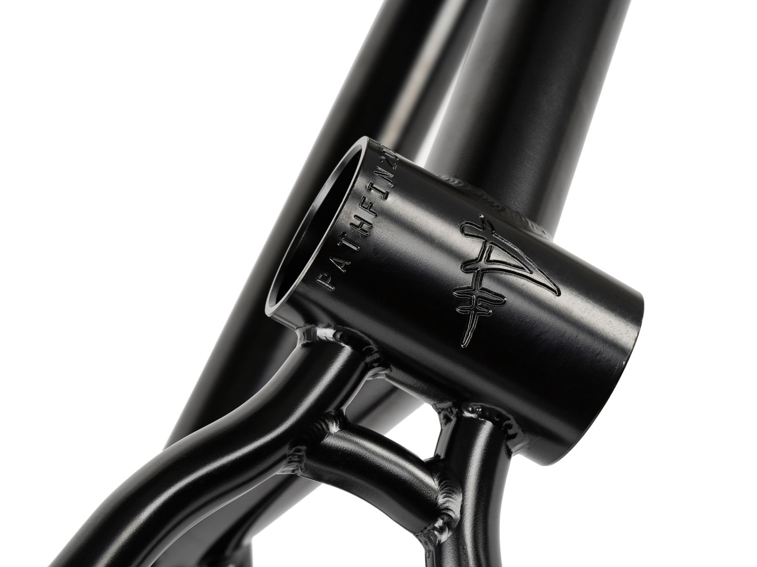 Felix Prangenberg’s signature Pathfinder frame is a product that reflects the originality, progression and power of Felix’s riding. Boasting a short 13” chainstay and a taller 9.666” standover height, the Pathfinder frame utilizes a ground-breaking offset thickness chainstay and bottom bracket shell, to strengthen the frame in areas susceptible to grind damage. Now with brand new graphics, and CNC detailing on the head tube and bottom bracket shell. Includes a lifetime guarantee.